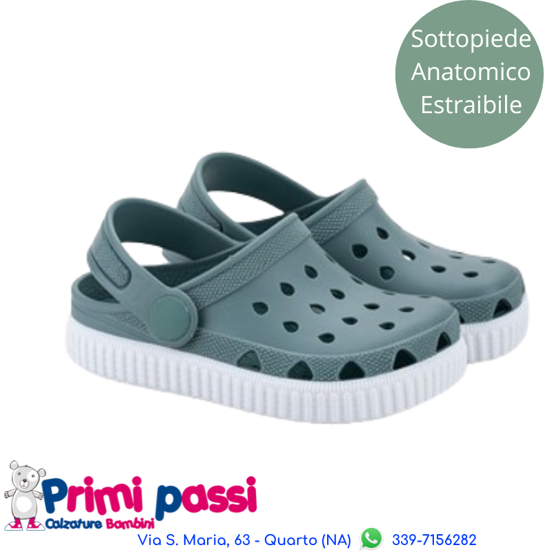 Comodo e pratico sandalo mare in gomma modello tipo Crocs. Ottimo per l'estate e le passeggiate in spiaggia. Perfetto per i primi passi e per i bambini perchè morbido e colorato. La pratica soletta interna assorbe gli urti del piedino durante le passeggiate estive mantenendolo fresco grazie al materiale traspirante. La soletta può essere rimossa all'occorrenza, ad esempio quando si è in spiaggia o in acqua per una flessibilità e una calzabilità comoda.